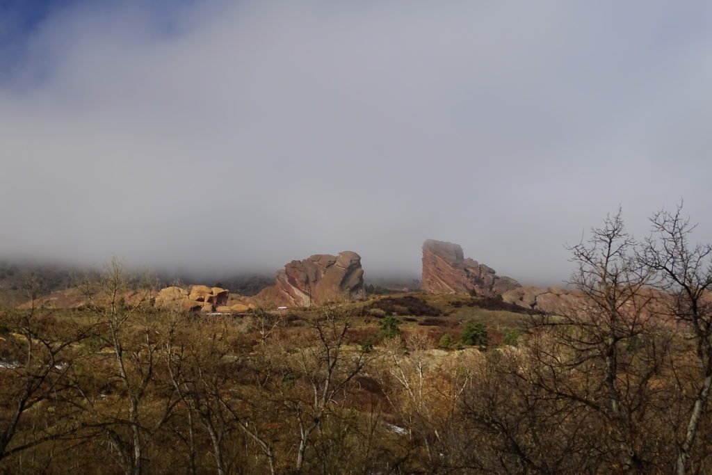 I learned today that Starbucks has something that’s been nicknamed the Medicine Ball. It’s Citrus Mint Honey Tea, and feeling a scratchy throat and a little congestion, I felt obliged to try. When I got up the hill where I live along the front range, I saw thin bands of clouds weaving like snakes through the rock formations. I changed plans, and instead of taking my Medicine Ball home, I grabbed my camera and headed to Red Rocks.