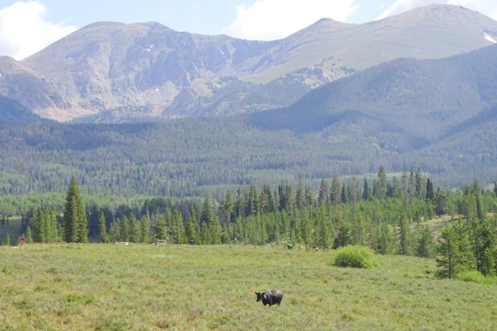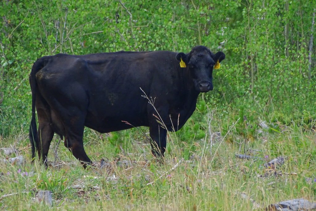 I hiked a nature trail in the hopes of seeing a moose. I heard snorting noises, and as I cautiously rounded a corner, I saw a black cow that looked more like the wall of a one-story building. She was just beyond the trail and seeing me approach, she ran behind a stand of trees. Massive running cows are comical. Their bodies don’t really change position vertically, but their legs move quickly in short steps in a cartoonish folly. On the return, the same cow stood on the trail with her calf. From a distance, stared each other down as if in a spaghetti Western. The huge black cow gave in and ran off with her calf, allowing me to pass safely.